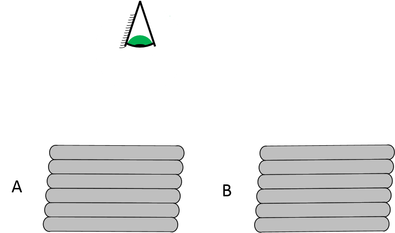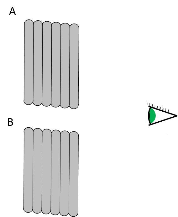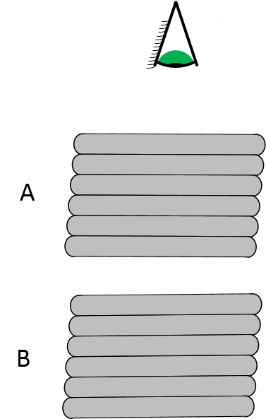 A current runs through coil A counterclockwise (when viewed from the amazingly detailed drawing of an eye). If this increases from 0 A to 1 A, what direction will the induced current in coil B flow?