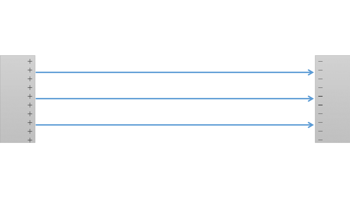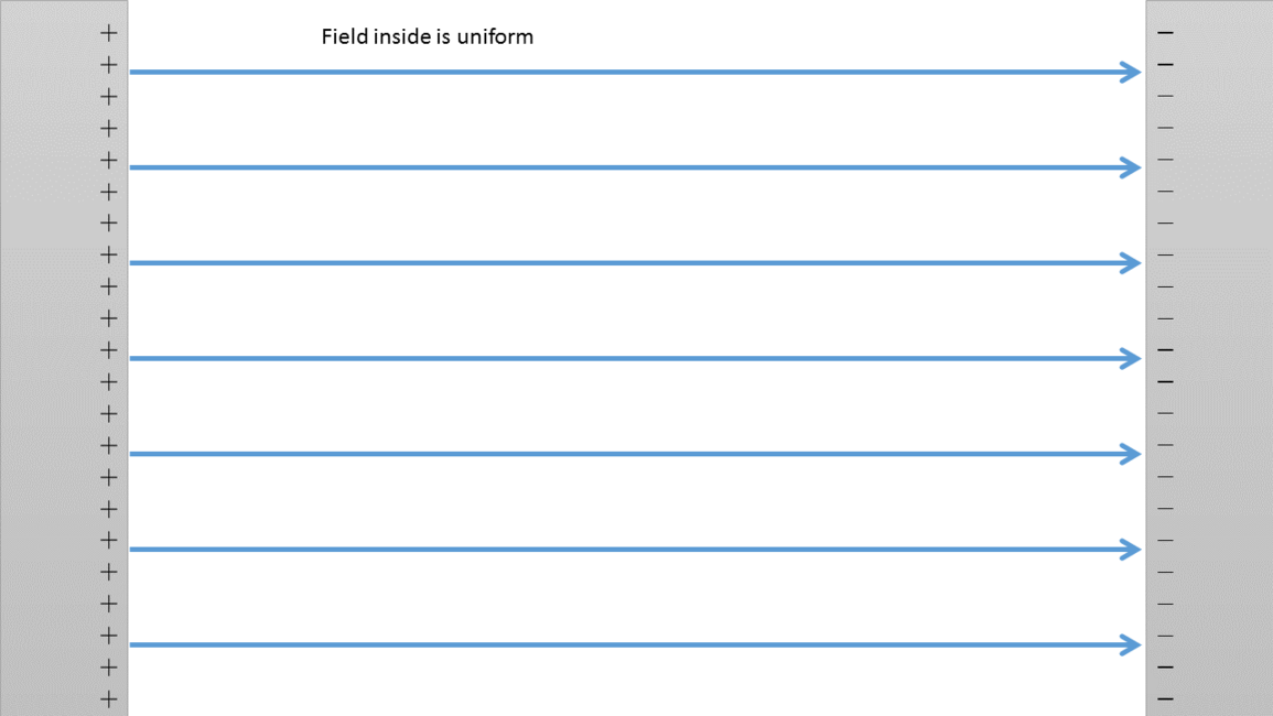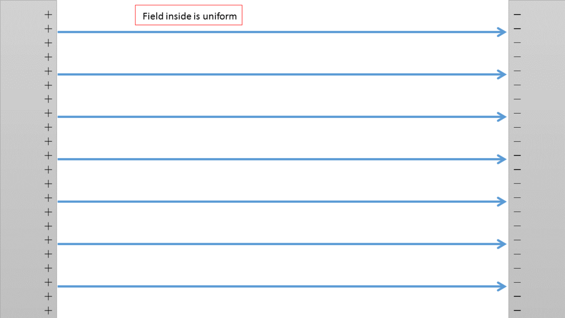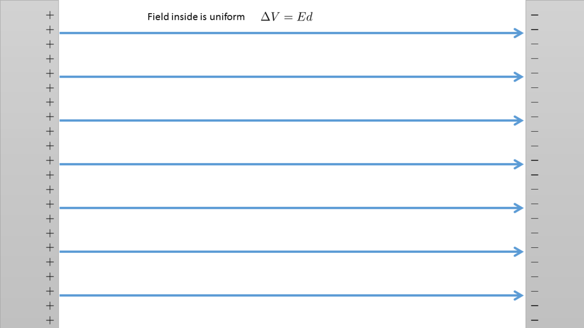 In this class, we will always assume that the field between the two plates of a capacitor is uniform.