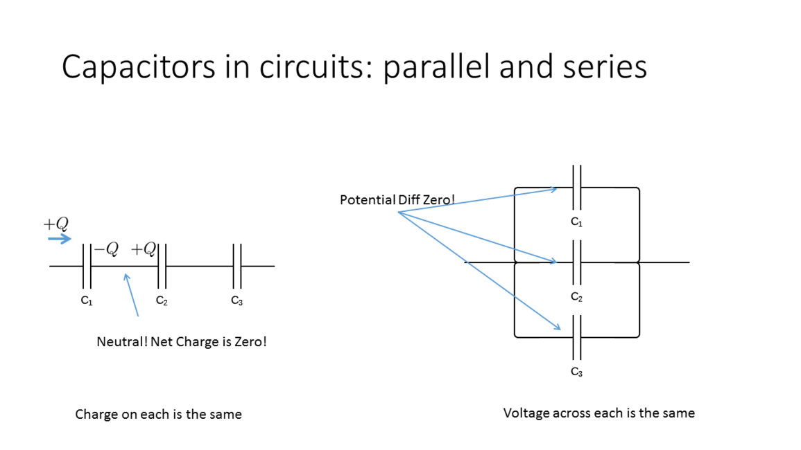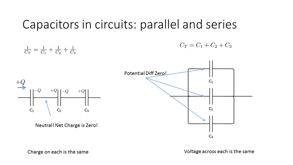\(Q = CV\) actually means \(|Q_\text{one plate}| = C \Delta |V_\text{between plates}|\)