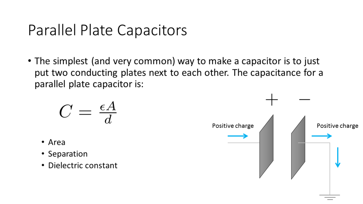 OK, so if I make the plates smaller, the capacitance goes down. That makes sense.